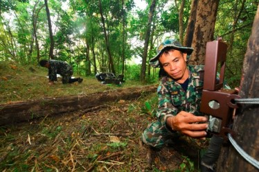 Errichten einer Salzleckstelle und Anbringen einer Kamerafalle (© alle Bilder DNP & WWF Thailand)